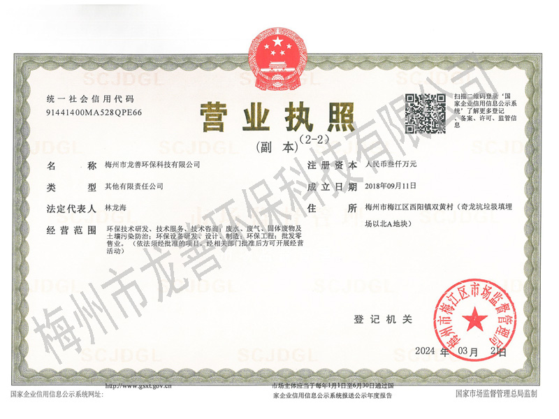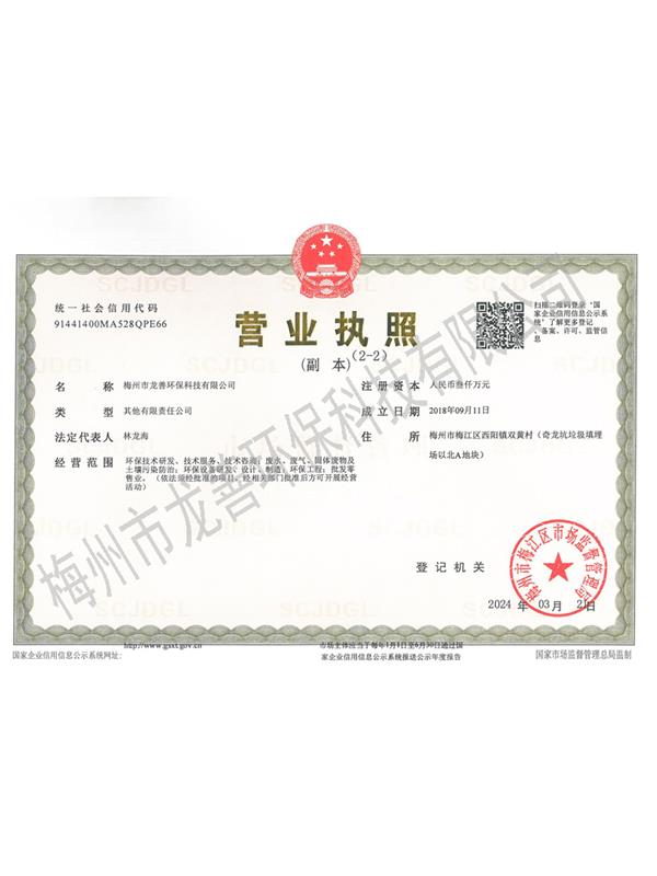 梅州市龍善環(huán)保科技有限公司為龍善環(huán)保股份有限公司(簡稱“龍善環(huán)保”)子公司。龍善環(huán)保于1995年12月成立,注冊資本為人民幣6,000萬元,總部位于深圳市南山區月亮灣大道2078號兆龍大樓16層。公司經生態(tài)環(huán)境部、廣東省生態(tài)環(huán)境廳、深圳市生態(tài)環(huán)境局、深圳市交通運輸委員會、深圳海事局等部門許可專業從事陸地和海洋環(huán)境保護產業的高科技民營企業,主要經營業務包括工業廢物收運、資源化利用和無害化處理處置、海洋船舶污油水接收和集中處理處置、突發(fā)環(huán)境事故清污應急處置等......